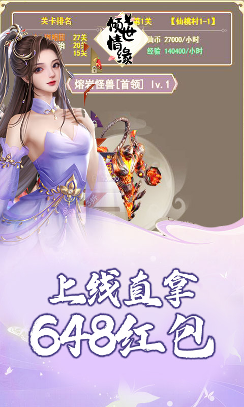 1.上线即送VIP特权15,GM特权1,1亿仙币,12000钻石.648充值卡,紫品仙剑,紫品仙女,“仙帝降临”称号