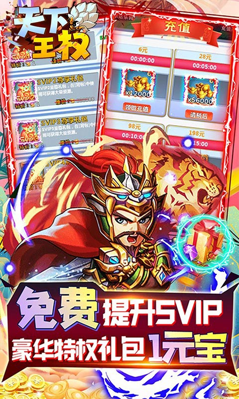 1、创角即送VIP15、一万元真充卡、888万金币、88888元宝、2000体力;