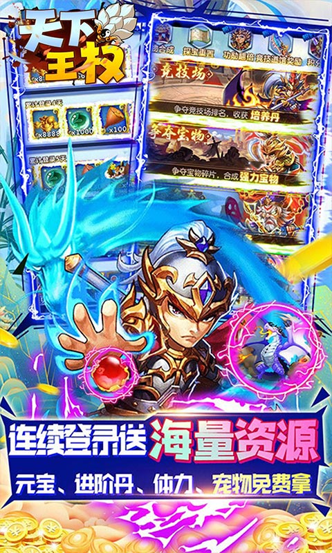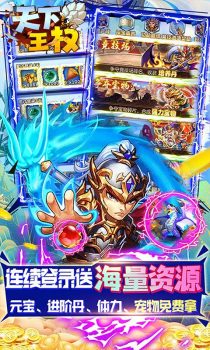3、次日签到送无双金将、七日再送金将左慈,连续登录送海量资源,元宝、进阶丹、体力、宠物免费拿;