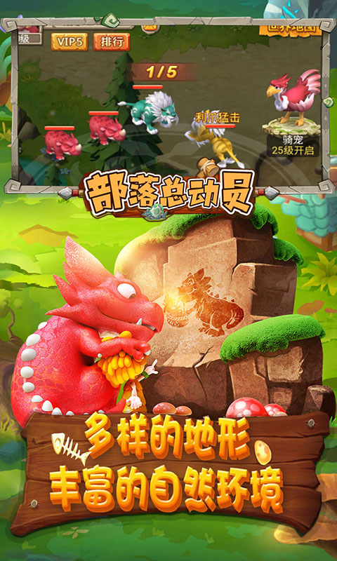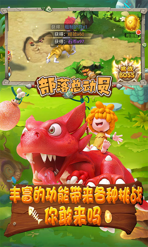 《部落总动员》手游是一款竖版的回合放置战斗手游,带你进入史前的石器部落。挂机放置的游戏模式,在你忙碌的时候就能自动打怪升级。多样的游戏史前BOSS,让你获得神装征服史前部落!快来进入游戏,与史前萌宠再续未解之缘吧!收集各种各样的史前宠物,它们全都具有潜在的天赋以及能力,你要做的就是挖潜它们的能力,培养它们的天赋。