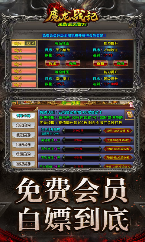 2、免费特权,免费会员,免费赞助,敢来就敢送,轻松打怪爆货币!