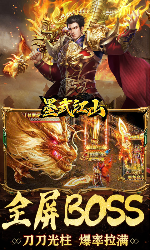 《墨武江山》是一款经典超级福利的单职业超变传奇手游,玩家在线就能领真充,充值货币说爆就爆,打怪爆率超高刀刀爆光柱,攻速拉满,玩法超多,打BOSS超爽,冲就完事了!