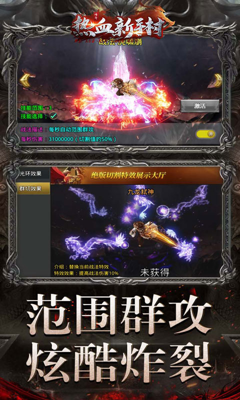 2、超强首发福利礼包,炫酷群攻技能,全屏吸怪,自动范围捡取,自动回收!超多福利!