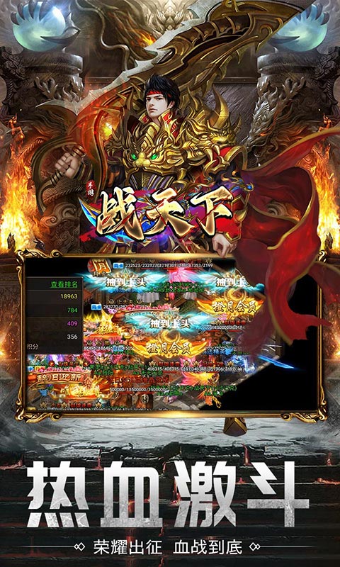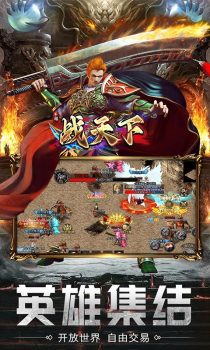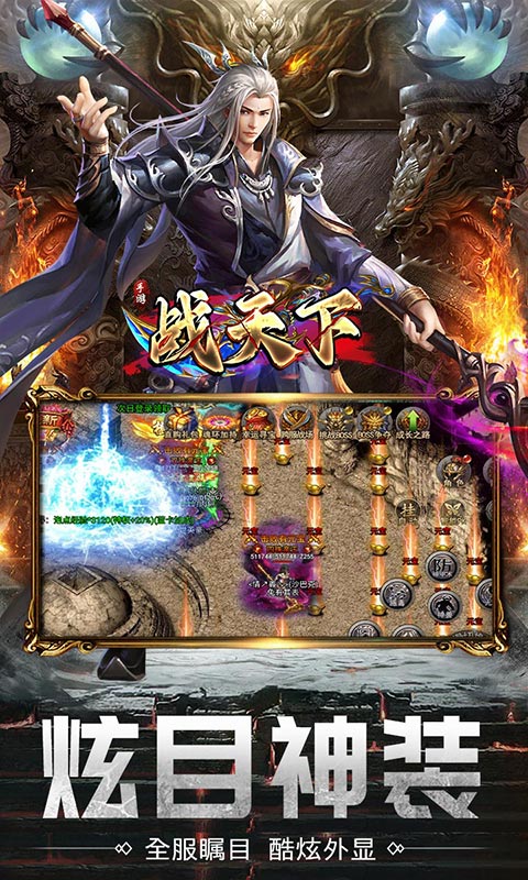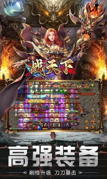 战天下(内置0.1折福利版) 全新三职业复古传奇,所有装备不花一分钱0氪获得,装备爆率高,震撼技能,熟悉的地图装备,熟悉的传奇画面,PK爽,新版本,刀刀切割,刀刀光柱,魂环,圣宠,装备自由交易,翅膀,宝石,还有酷炫坐骑等你来领取。超流畅千人同屏、万人攻城,唤起热血激情!