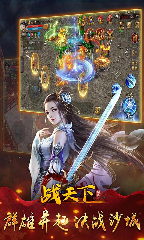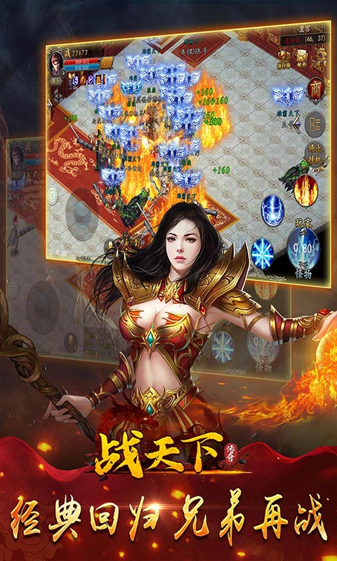 战天下(复古传叁归来)是一款经三职业典传奇手游。安卓、苹果手机的用户都能玩。作为一款老版本的传奇类游戏,就这点来说相比其他传奇类游戏已经非常方便了。同时就同类手游对比,国内其他游戏,可以说内容丰富了数倍,画面更加的绚丽多彩,而且技能也加入了元素的玩法,更加多种多样。
