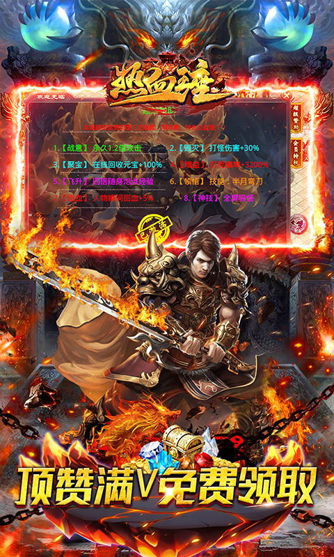 《热血王座(0.1折爆爽群切送充)》是一款永久0.1折传奇手游!游戏特效拉满,爆率拉满,攻速拉满,让你一上线就能体验到遥遥领先的打击感!顶赞满V全部免费送,真冲红包免费送,上线大礼包免费送!装备首爆,全服BOSS,全服活动,每一样都赠送超多材料和货币,散人一样能通关!每一个大陆都有不一样的特色,每一刀下去都有惊喜,快来和我一起征战这传奇世界吧。