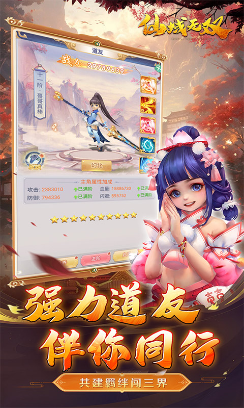 《仙域无双》是一款Q版ARPG仙侠题材手游,该手游精美高清的画质给人眼前一亮,Q版人物模型十分细腻,一举一动流畅自然。游戏技能华丽而震撼,配备绝美的仙羽和威武坐骑,尽显霸王之风。在唯美仙境地图中执行趣味任务,更能获得多款美人,伴随身后征战江湖。一款集美人收集,骑战争锋,升级养成,自由PK等多种玩法的华丽大作,赋予玩家愉快舒畅的极致游戏体验。