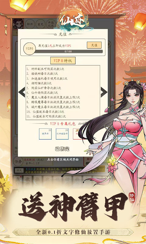 1.登录送称号:笑傲江湖*1 钻石*8.8W,金币*1000万,完成新手任务激活开服七日免费领取百抽 第七日领取98元真充卡