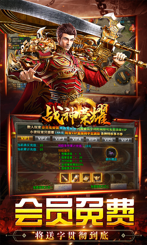 1.上线就送:免费送首充 五大神装 五大特权免费领