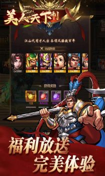 美人天下(经典复刻街机三国)一款复古怀旧的三国挂机游戏,经典街机风格画面完美重现!全场充值仅需1.5折,细致精美的画面全新升级,传统闯关玩法满是回忆。炫酷技能,合体神技,横扫千军势不可挡!超多三国名将等你召唤,无敌神将震撼来袭,开启你的争霸之路!