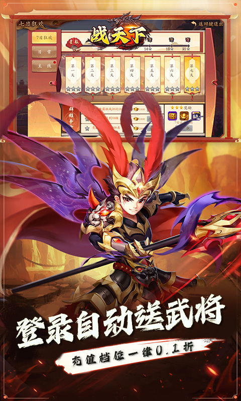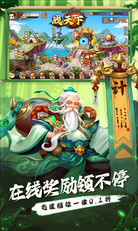 上线即送免费五连抽、在线奖励领不停、登录自动送武将