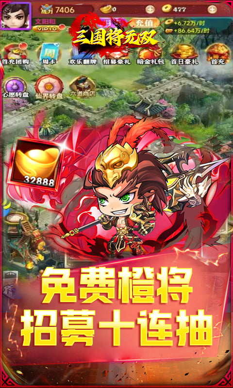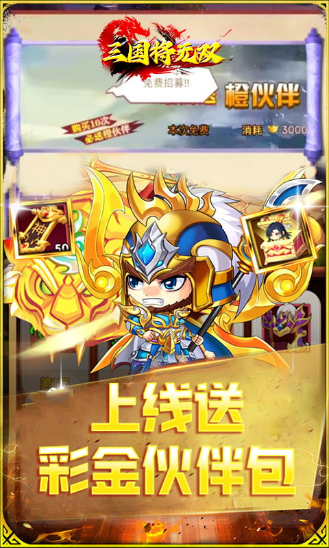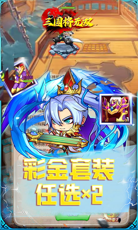 这是一款以三国乱世为背景打造的回合类挂机手游。画面有趣,玩法升级!游戏以Q版武将形象和简单的操作,酷炫的坐骑与翅膀,还有唯美的外观系统。其他还拥有仙侣、神兵、法宝、宠物等各种轻松又强大的功能系统为大家再次描绘一个不一样的三国!龙腾于天,长吟天地,谁是王者!