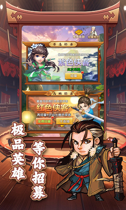 这是一款以武侠题材为背景的卡牌游戏,在这里可以享受到一场场酣畅淋漓的战斗体验!还有几十位豪侠随掌门并肩作战,门派特有的继承系统,供掌门培养出专属侠客!游戏内除了常规的PVP玩法,我们还融入了多人对战的GVG玩法,快来一起体验吧!