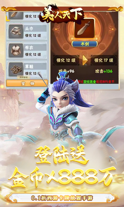 一款0.1折西游神话架空题材的回合制游戏。包含浓郁的远古神话气息,精美的画面表现,便捷轻松的挂机玩法,酷炫的坐骑与翅膀系统,还有唯美的外观系统。其他还拥有仙侣、神兵、法宝、宠物等各种轻松又强大的功能系统,让你每天都有不同的极致体验!