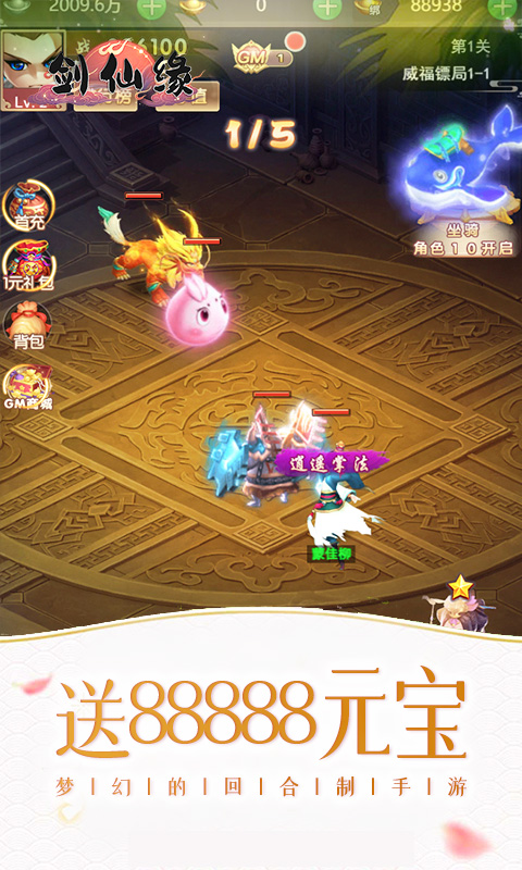 1、上线送满V、绑元188888元宝、银两2000万、SSSR应龙卡*1