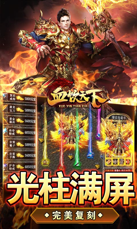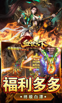 《血饮天下》是一款完美复刻端游的传奇三职业手游,在手游中我们加入了超多的丰富福利,还有多样的地图、专属神器、加速装备、鞭尸神器、炫酷光柱、免费礼包、超多活动一定让您玩的爽快!